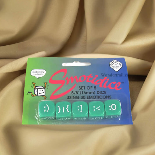 KOP11777 Emotidice Green Dice White Emoticons D6 16mm (5/8in) Pack of 5