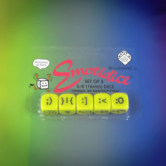 KOP11779 Emotidice Yellow Dice Black Emoticons D6 16mm (5/8in) Pack of 5