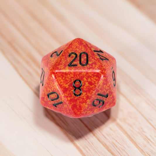 CHXXS2021 Fire Speckled Die Black Numbers D20 34mm (1.34in) Pack of 1