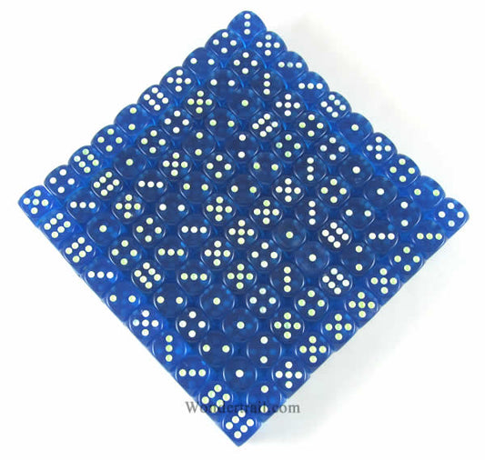 KOP05160 Blue Transparent Dice Glow in the Dark Pips D6 16mm Bulk Pack of 200
