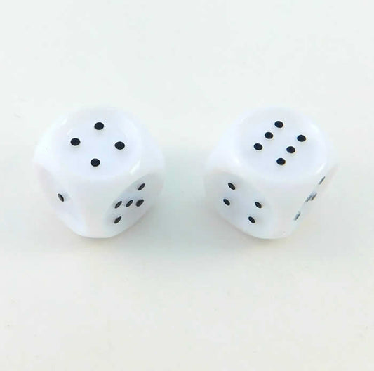 KOP03999 White Tactile Dice Raised Black Pips D6 20mm (25/32in) Pack of 2