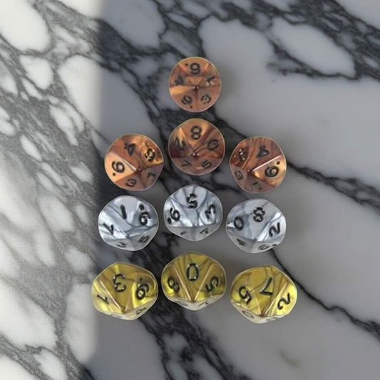KOP12313 Bronze Olympic Dice Black Numbers D10 16mm (5/8in) Set of 10