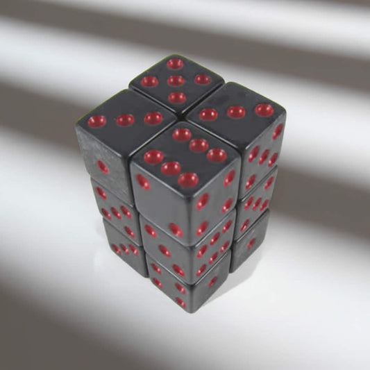 KOP08620 Charcoal Marbleized Dice with Red Pips D6 16mm (5/8in) Pack of 12 Dice