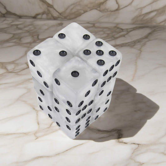 KOP08622 Pearl Marbleized Dice with Black Pips D6 16mm (5/8in) Pack of 12 Dice