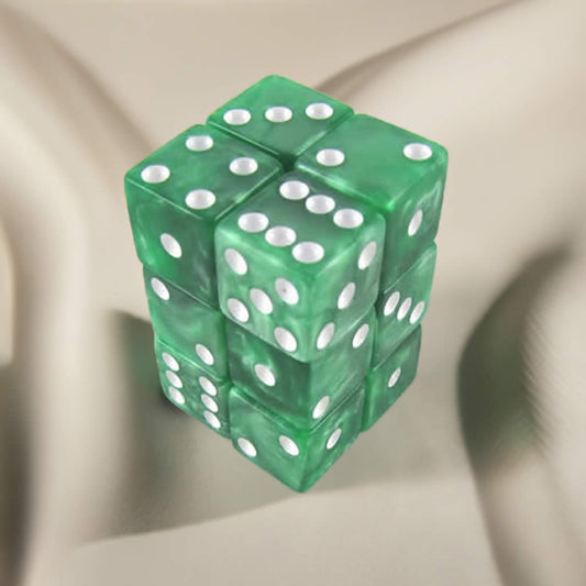 KOP12184 Green Marblized Dice with White Pips D6 16mm (5/8in) Pack of 12