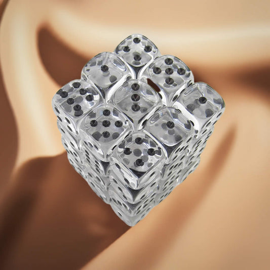 KOP05121 Clear Transparent Deluxe Dice Black Pips D6 12mm Pack of 36