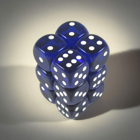 KOP08596 Blue Transparent Deluxe Dice with White Pips D6 16mm (5/8in) Pack of 12 Dice