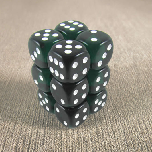 KOP08598 Green Transparent Deluxe Dice White Pips D6 16mm Pack of 12