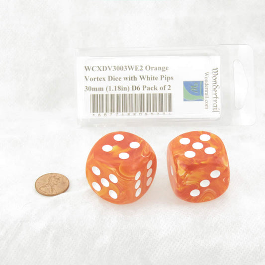 WCXDV3003WE2 Orange Vortex Dice with White Pips 30mm (1.18in) D6 Pack of 2
