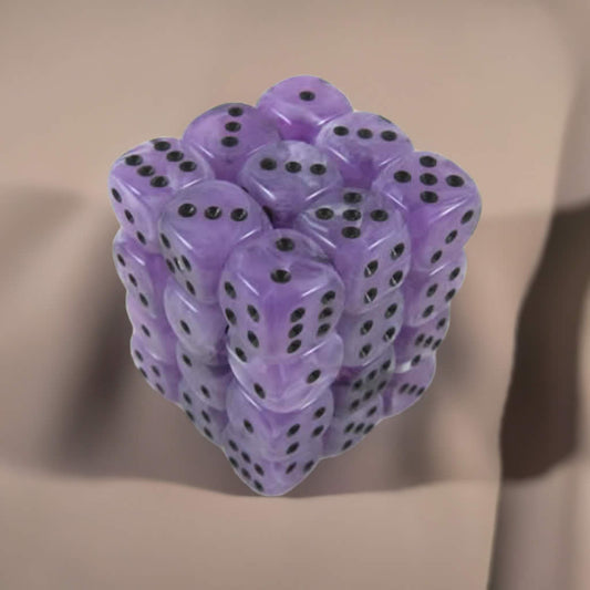 KOP04646 Swirl Ice Purple Dice with Black Pips D6 12mm (1/2in) Pack of 36 Dice