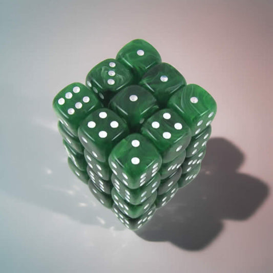 KOP05128 Ice Green Swirl Deluxe Dice with White Pips D6 12mm (1/2in) Pack of 36 Dice