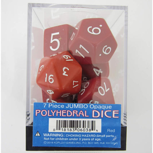 KOP06038 Red Jumbo Dice with White Numbers 24mm (15/16in) Set of 7