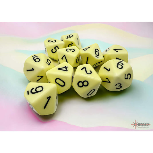 CHX25262 Yellow Pastel Dice with Black Numbers D10 Aprox 16mm (5/8in) Set of 10