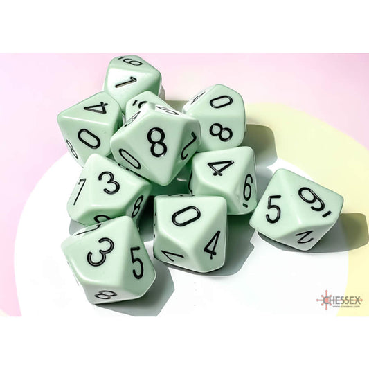 CHX25265 Green Pastel Dice with Black Numbers D10 Aprox 16mm (5/8in) Set of 10