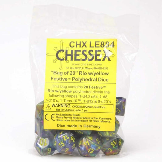 CHXLE884 Rio Festive Dice with Yellow Numbers 16mm (5/8in) Pack of 20