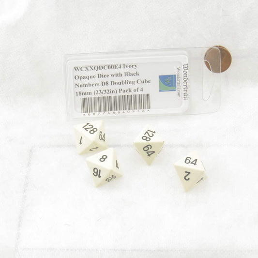 WCXXQDC00E4 Ivory Opaque Dice with Black Numbers D8 Doubling Cube 18mm (23/32in) Pack of 4