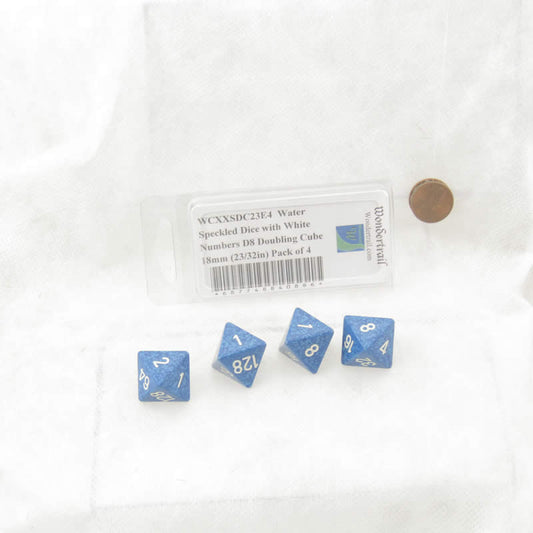 WCXXSDC23E4 Water Speckled Dice with White Numbers D8 Doubling Cube 18mm (23/32in) Pack of 4