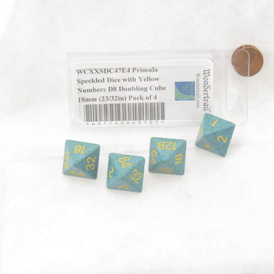 WCXXSDC47E4 Primula Speckled Dice with Yellow Numbers D8 Doubling Cube 18mm (23/32in) Pack of 4
