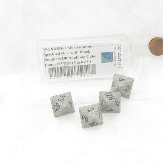 WCXXSDC95E4 Andesite Speckled Dice with Black Numbers D8 Doubling Cube 18mm (23/32in) Pack of 4