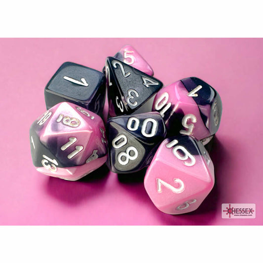 CHX20630 Black and Pink Gemini Mini Dice with White Colored Numbers 10mm (3/8in) Set of 7