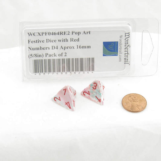WCXPF0464RE2 Pop Art Festive Dice with Red Numbers D4 Aprox 16mm (5/8in) Pack of 2