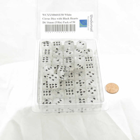 WCXXM0601E50 White Cirrus Dice with Black Hearts D6 16mm (5/8in) Pack of 50