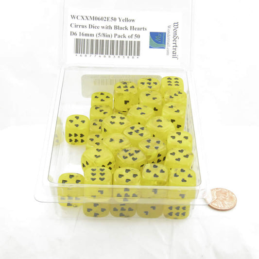 WCXXM0602E50 Yellow Cirrus Dice with Black Hearts D6 16mm (5/8in) Pack of 50
