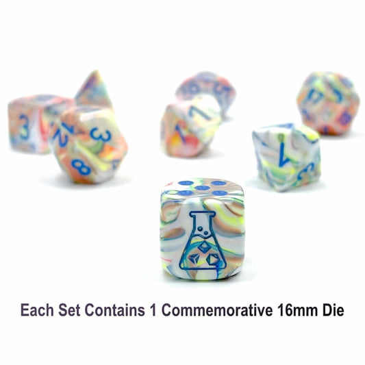 CHX30047 Kaleidoscope Festive Luminary Dice with Blue Numbers 7+1 Dice Set 16mm (5/8in)