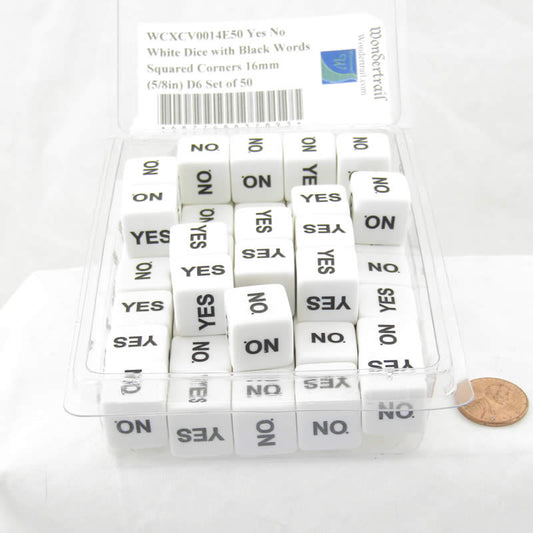 WCXCV0014E50 Yes No White Dice with Black Words Squared Corners 16mm (5/8in) D6 Set of 50