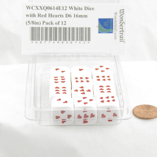 WCXXQ0614E12 White Dice with Red Hearts D6 16mm (5/8in) Pack of 12