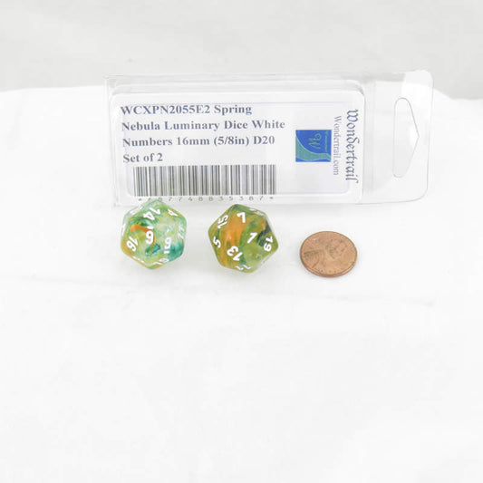 WCXPN2055E2 Spring Nebula Luminary Dice White Numbers 16mm (5/8in) D20 Set of 2
