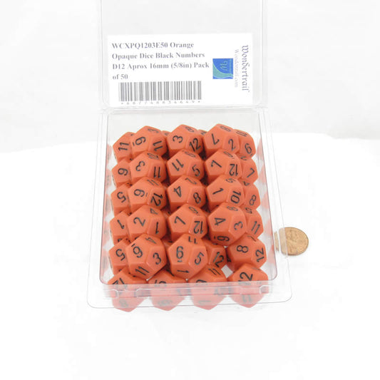 WCXPQ1203E50 Orange Opaque Dice Black Numbers D12 Aprox 16mm (5/8in) Pack of 50