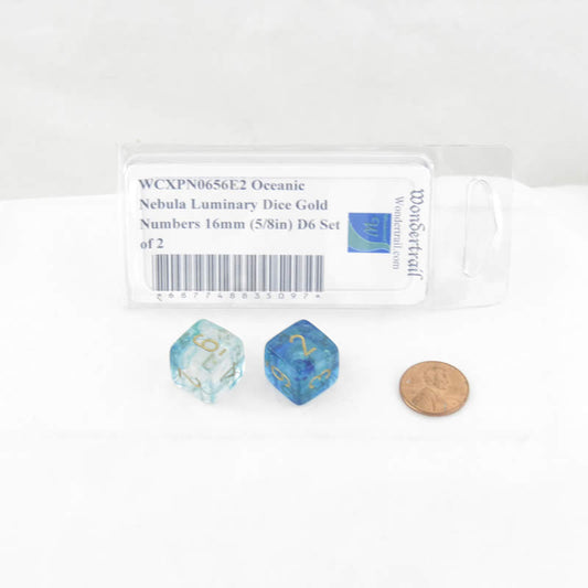 WCXPN0656E2 Oceanic Nebula Luminary Dice Gold Numbers 16mm (5/8in) D6 Set of 2