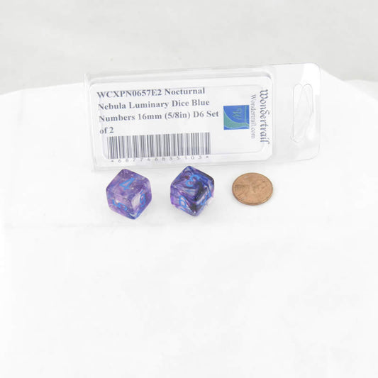 WCXPN0657E2 Nocturnal Nebula Luminary Dice Blue Numbers 16mm (5/8in) D6 Set of 2