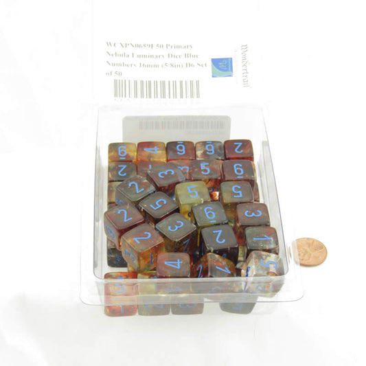 WCXPN0659E50 Primary Nebula Luminary Dice Blue Numbers 16mm (5/8in) D6 Set of 50