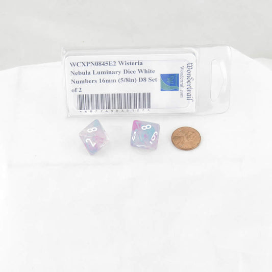 WCXPN0845E2 Wisteria Nebula Luminary Dice White Numbers 16mm (5/8in) D8 Set of 2