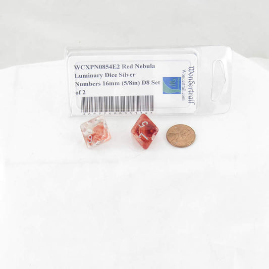WCXPN0854E2 Red Nebula Luminary Dice Silver Numbers 16mm (5/8in) D8 Set of 2