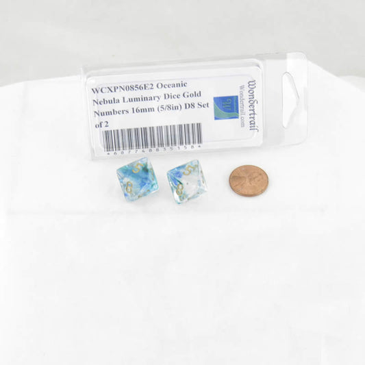 WCXPN0856E2 Oceanic Nebula Luminary Dice Gold Numbers 16mm (5/8in) D8 Set of 2