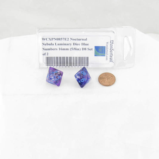 WCXPN0857E2 Nocturnal Nebula Luminary Dice Blue Numbers 16mm (5/8in) D8 Set of 2