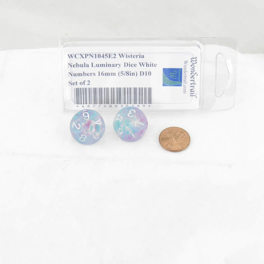 WCXPN1045E2 Wisteria Nebula Luminary Dice White Numbers 16mm (5/8in) D10 Set of 2