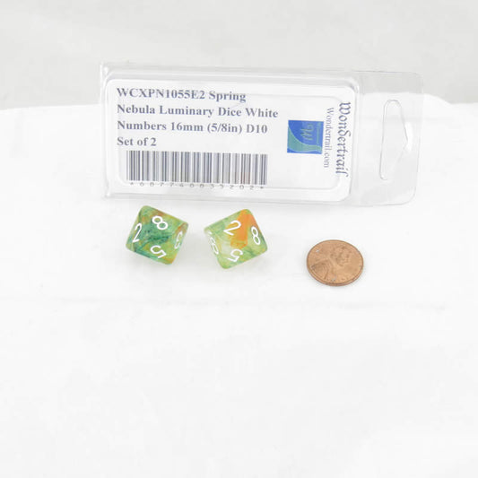 WCXPN1055E2 Spring Nebula Luminary Dice White Numbers 16mm (5/8in) D10 Set of 2