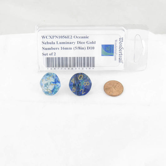 WCXPN1056E2 Oceanic Nebula Luminary Dice Gold Numbers 16mm (5/8in) D10 Set of 2