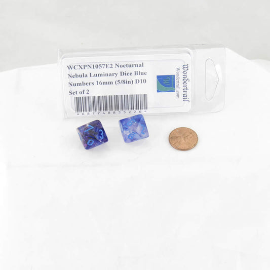 WCXPN1057E2 Nocturnal Nebula Luminary Dice Blue Numbers 16mm (5/8in) D10 Set of 2