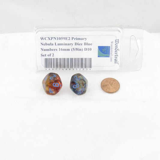 WCXPN1159E2 Primary Nebula Luminary Dice Blue Numbers 16mm (5/8in) Tens D10 Set of 2
