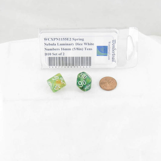 WCXPN1155E2 Spring Nebula Luminary Dice White Numbers 16mm (5/8in) Tens D10 Set of 2