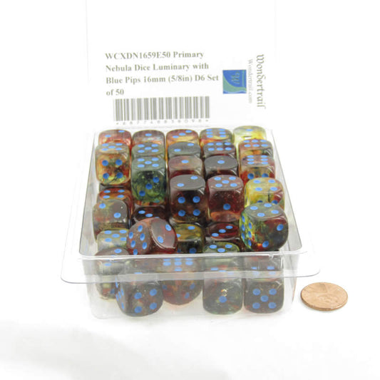 WCXDN1659E50 Primary Nebula Dice Luminary with Blue Pips 16mm (5/8in) D6 Set of 50