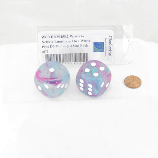 WCXDN3045E2 Wisteria Nebula Luminary Dice White Pips D6 30mm (1.18in) Pack of 2