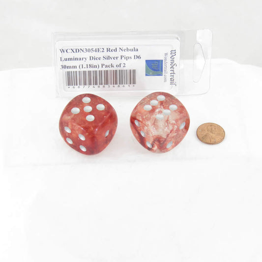 WCXDN3054E2 Red Nebula Luminary Dice Silver Pips D6 30mm (1.18in) Pack of 2