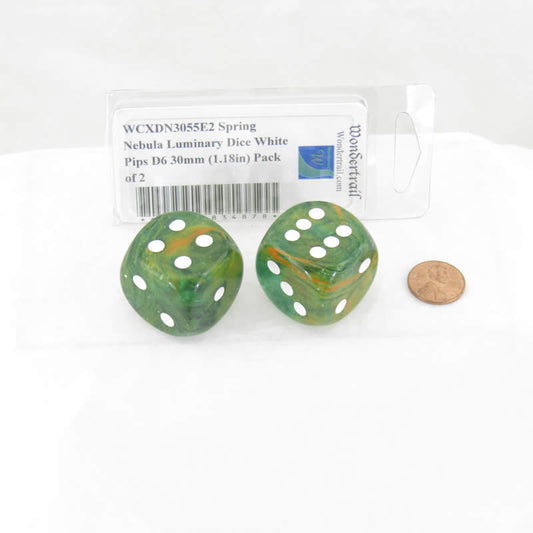WCXDN3055E2 Spring Nebula Luminary Dice White Pips D6 30mm (1.18in) Pack of 2