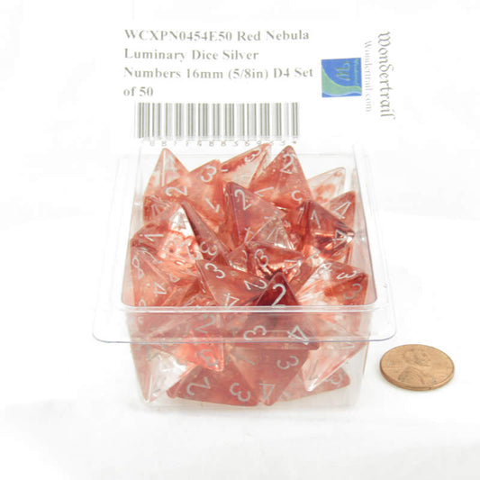 WCXPN0454E50 Red Nebula Luminary Dice Silver Numbers 16mm (5/8in) D4 Set of 50